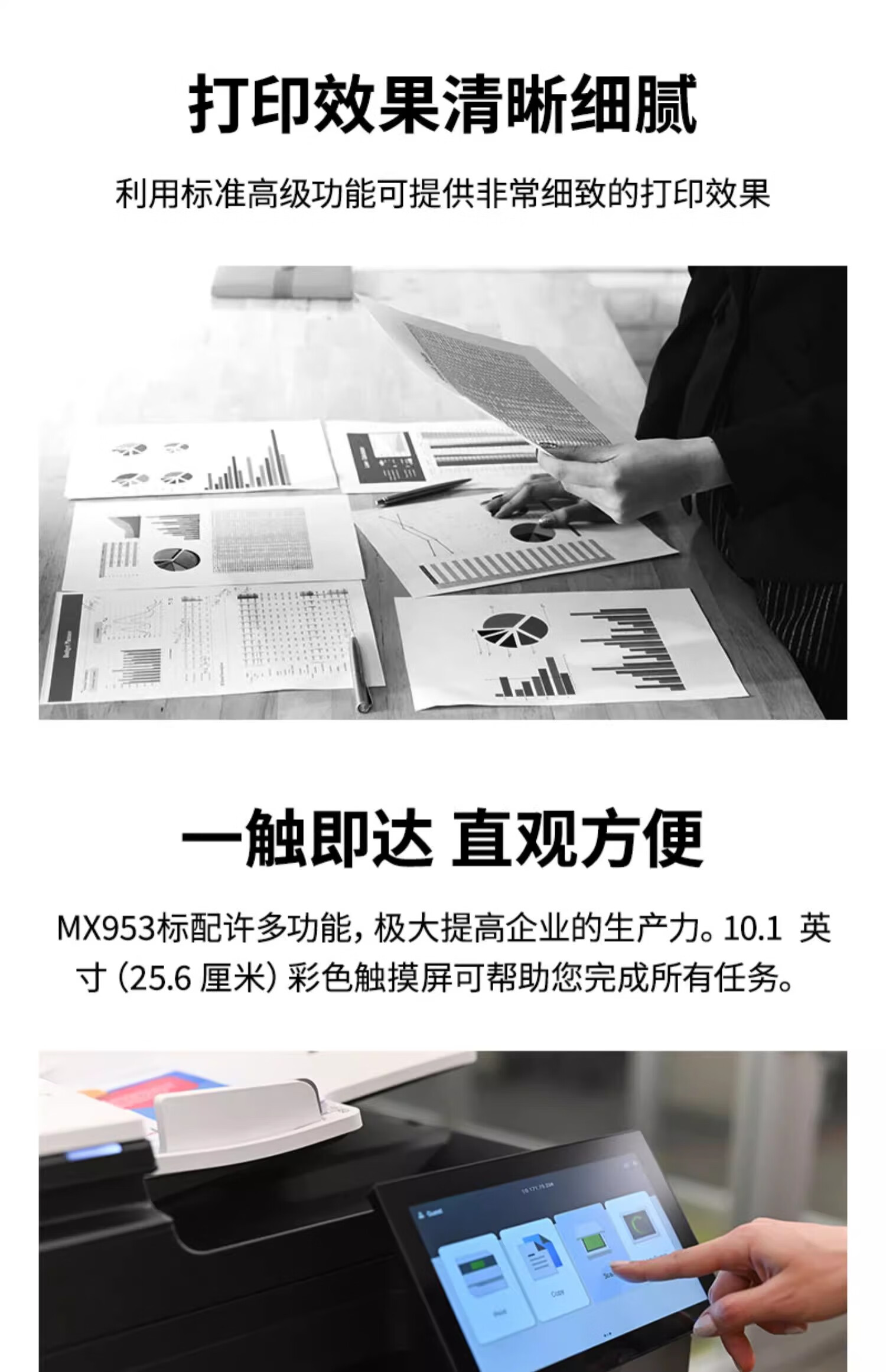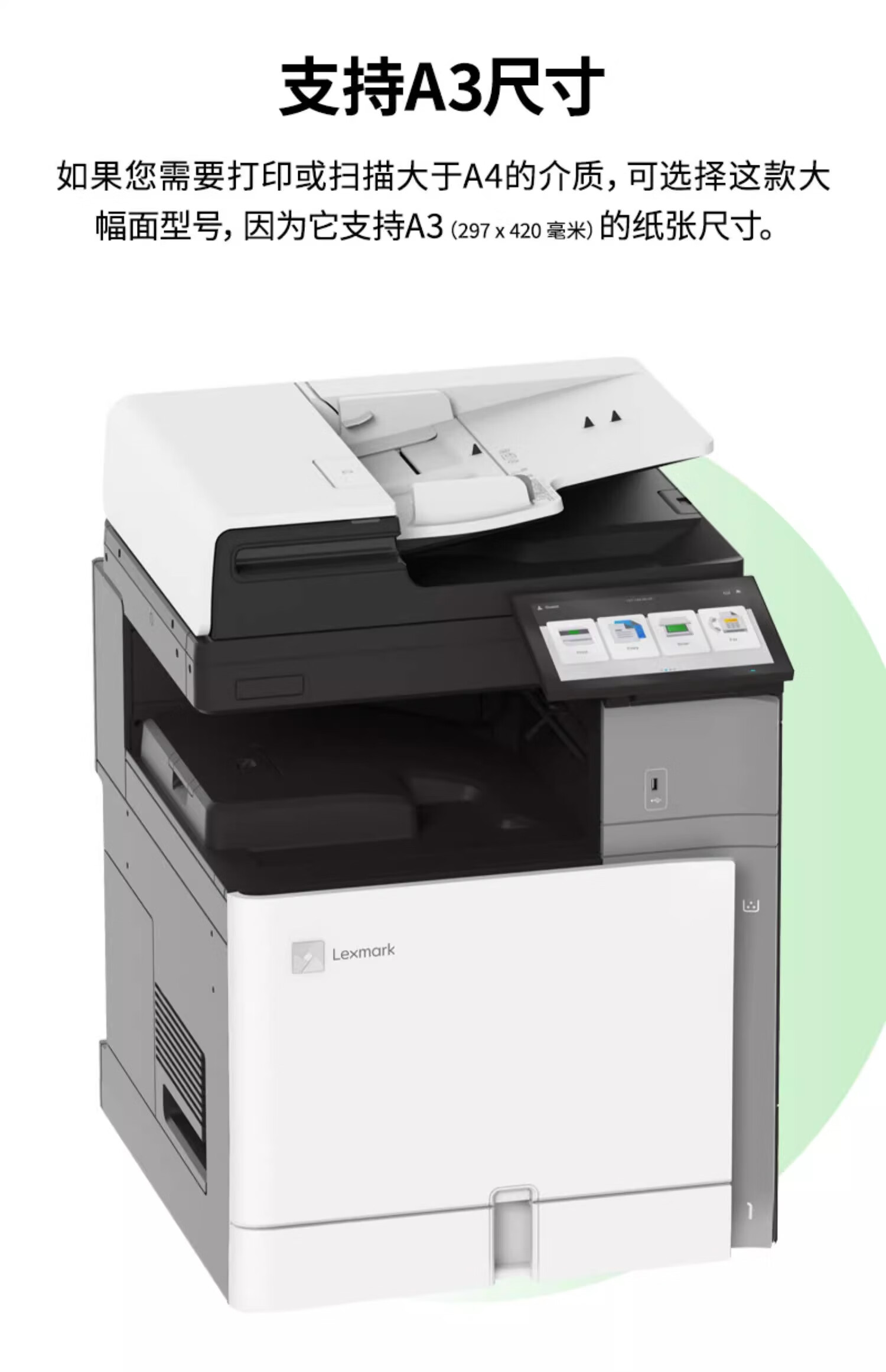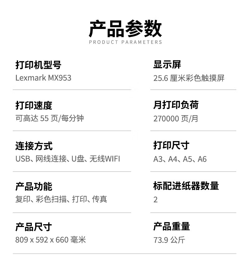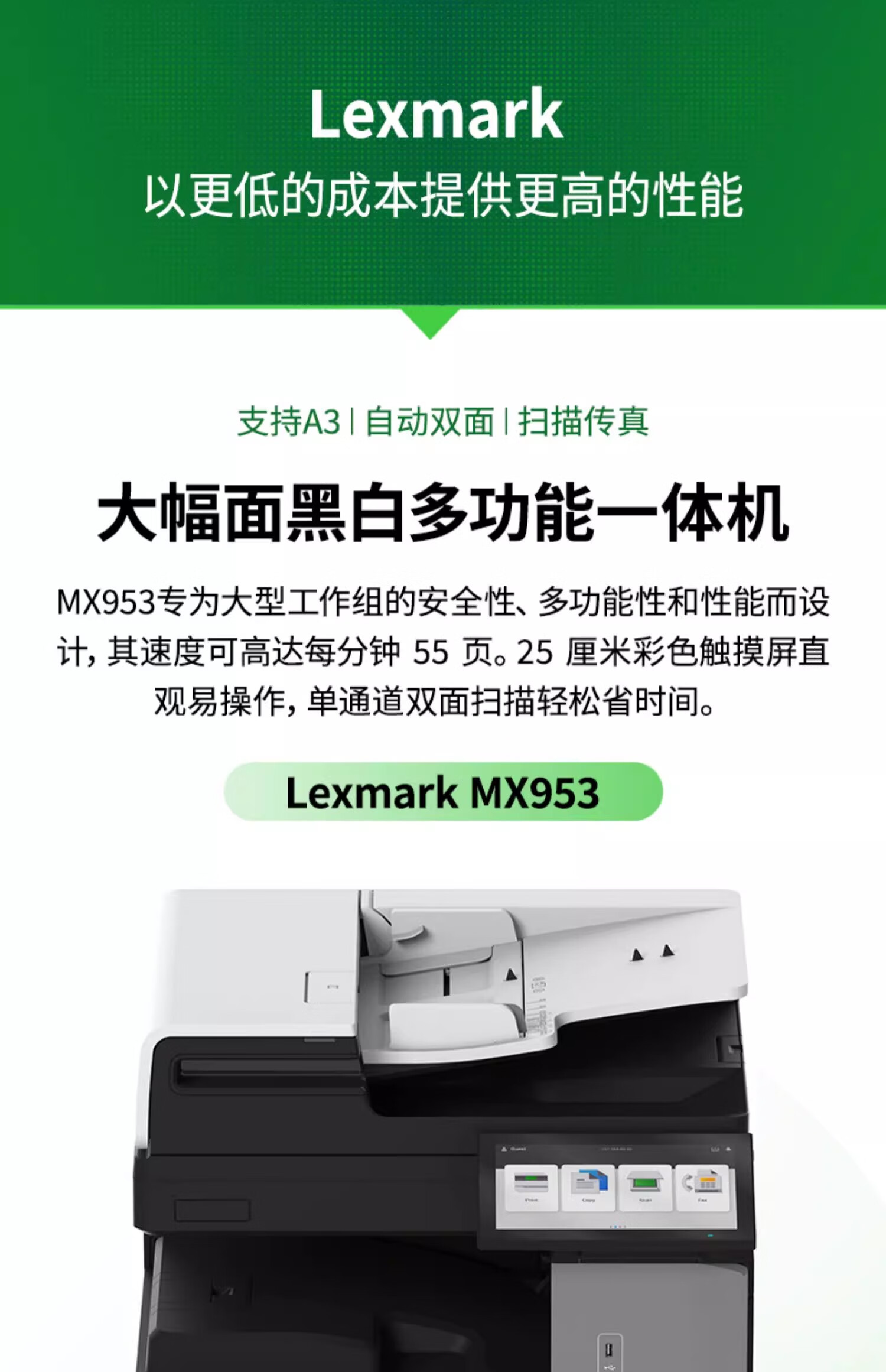 利盟(Lexmark)MX953打印机 A3黑白激光多功能一体打印机55页/分钟 安全打印超耐用